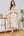 Robe Abaya Caftan Marocain à Manches Longues Floral Blanc