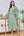 Caftan long vert blush à fleurs et manches chauve-souris