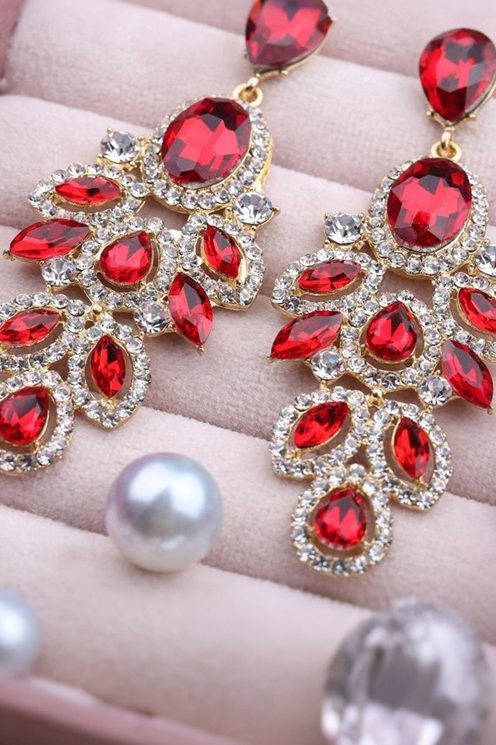 Longues boucles d’oreilles de bal en forme de feuille vert foncé scintillantes avec des strass