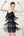 Black Golden V Col Frange 1920s Gatsby Robe avec paillettes