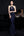 Robe de soirée trapèze en satin bleu marine avec paillettes