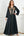 Robe formelle en mousseline de soie à manches chauve-souris bleu marine avec fente