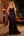 Robe de soirée longue léopard café à volants étagés perlée sans bretelles