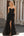 Robe de Soirée noire trapèze à bretelles spaghetti brodées longue corset