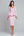 Robe de travail midi à manches 3/4 froncée fourreau rose
