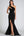 Robe formelle en mousseline de soie noire à épaules dénudées avec fente