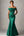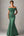 Robe formelle en satin à volants à épaules dénudées vert foncé