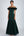 Robe formelle froncée à volants à épaules dénudées vert foncé