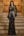 Robe formelle noire à manches longues et paillettes sirène dorée