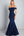 Robe formelle sirène froncée à épaules dénudées bleu marine