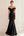 Robe formelle sirène en mousseline de soie crêpe noir avec volants