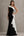 Robe longue cravate noire sirène à bretelles spaghetti en velours noir