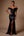 Robe longue formelle noire fourreau à épaules froides avec manches