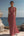 Robe longue formelle froncée fourreau en terre cuite à épaules dénudées