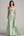Robe longue formelle froncée vert foncé à une épaule avec fente