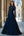 Robe trapèze à col haut en dentelle marine appliquée Mère de la mariée