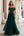 Robe trapèze vert foncé à épaules dénudées longue mère de la mariée