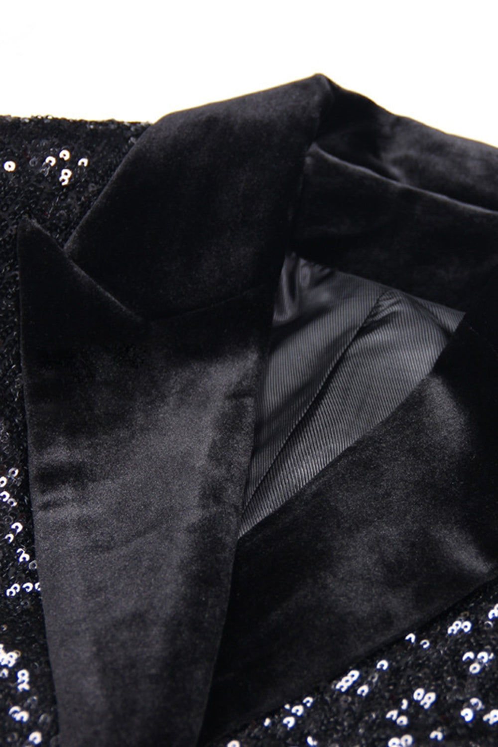 Blazer pour femmes à revers à paillettes noires scintillantes