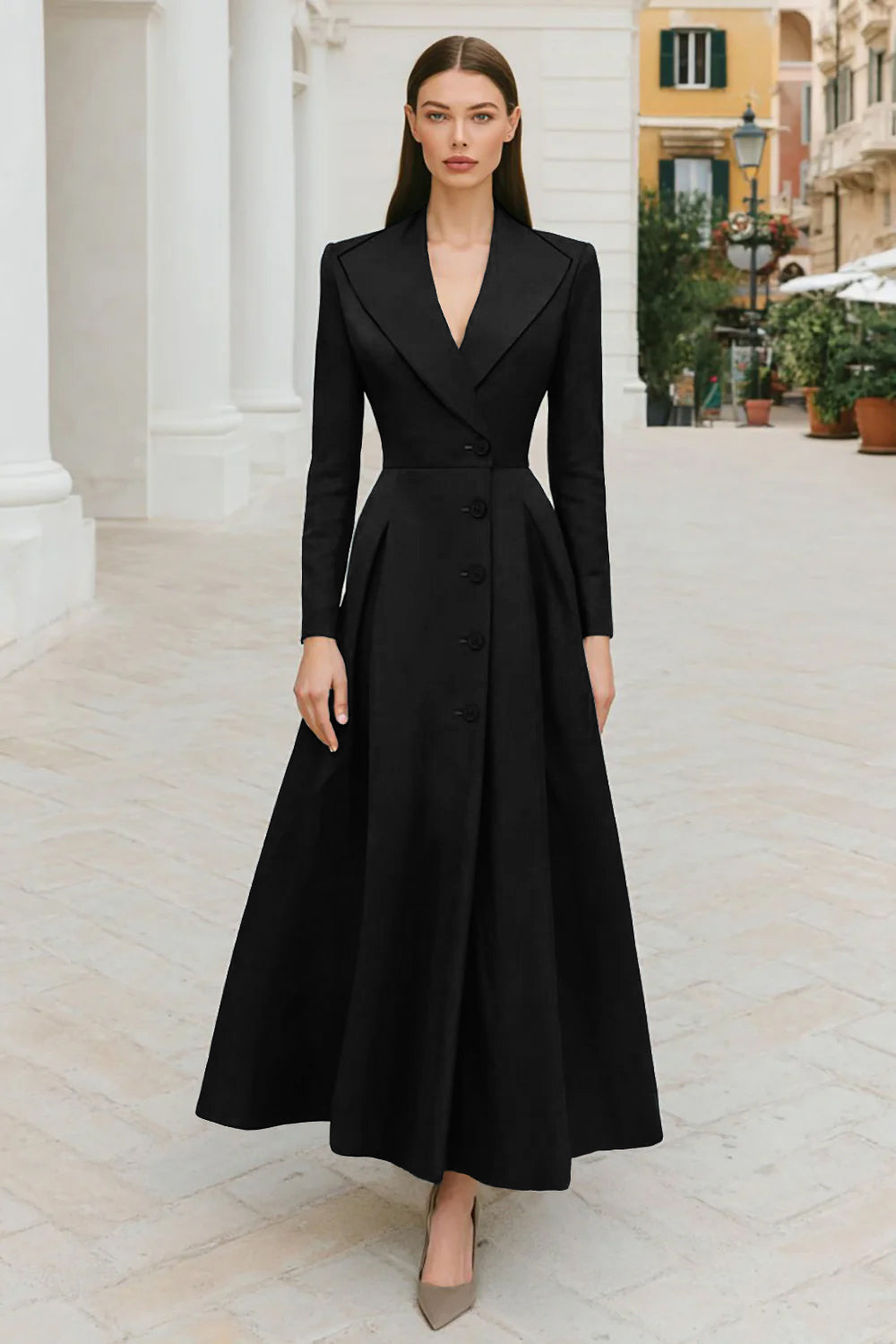 Robe de travail à simple boutonnage à simple boutonnage en A