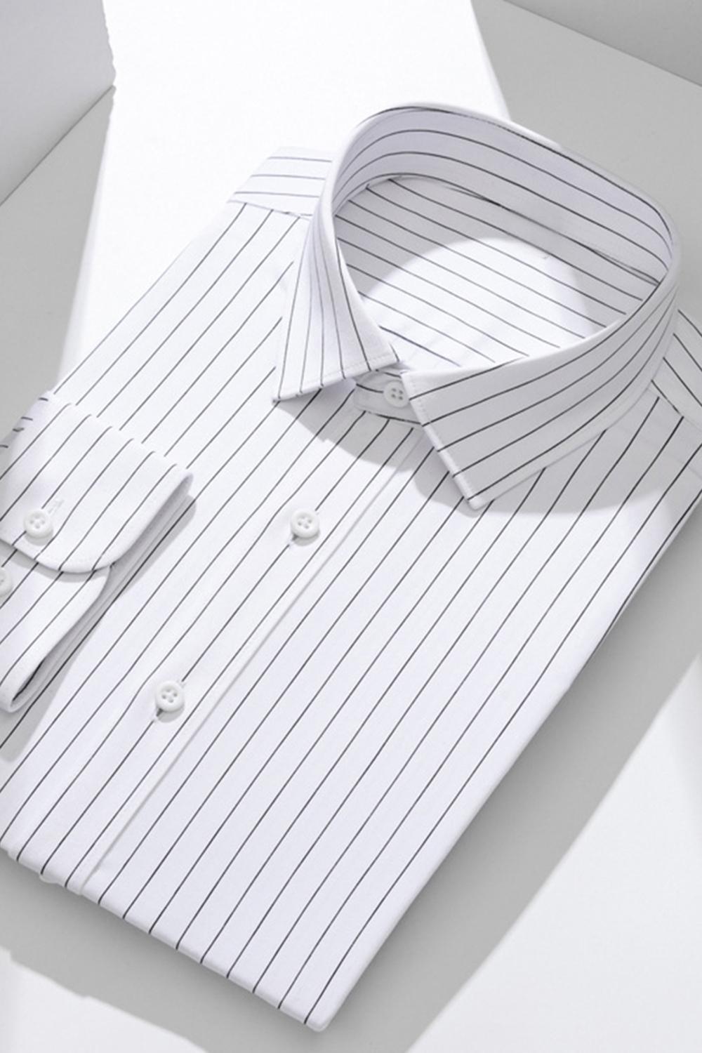 Chemise blanche à manches longues à rayures fines fines pour hommes