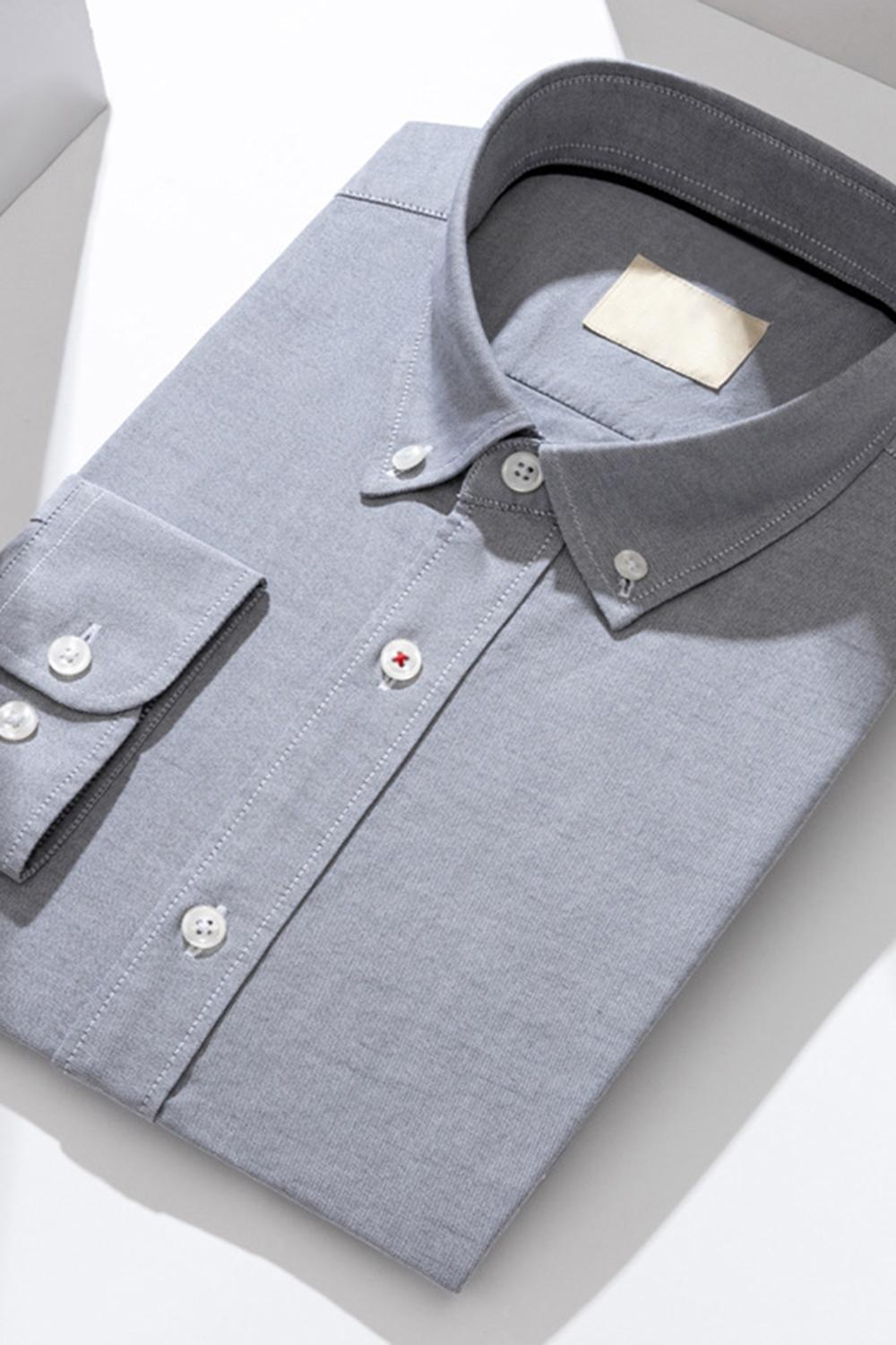 Chemise d’homme unie à manches longues bleu-gris slim fit