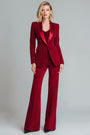 Ce tailleur pantalon rouge se distingue par son allure audacieuse et ultra-féminine.