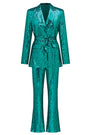Sparkly vert cranté revers paillettes femmes costumes avec ceinture
