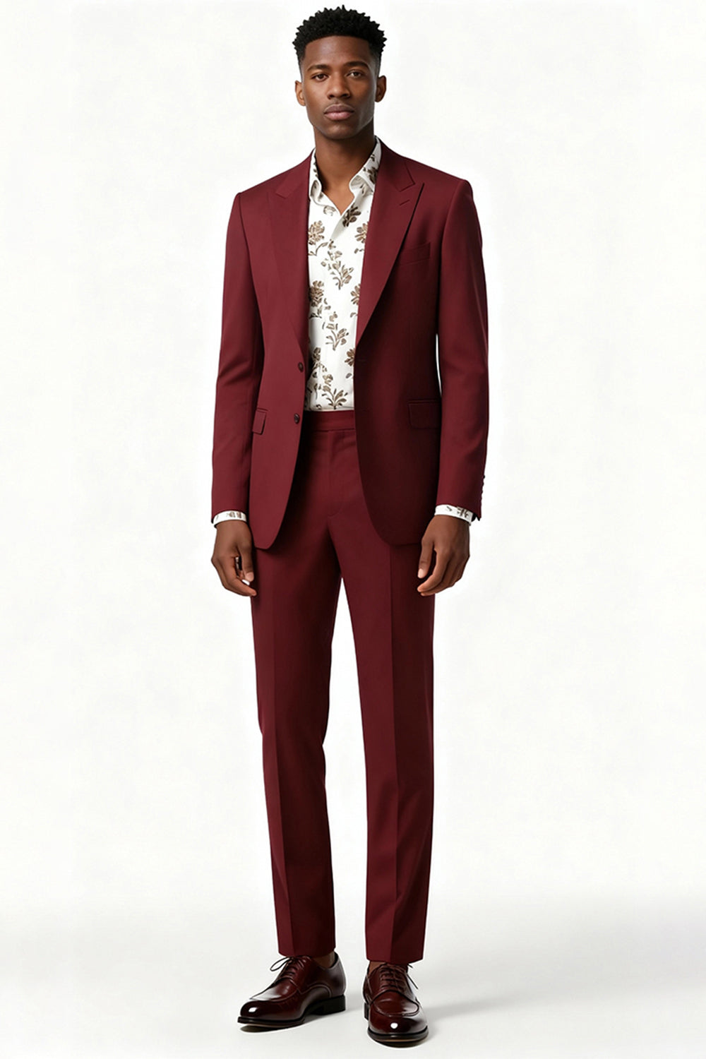 Burgundy Peak Lapel 2 pièces simple boutonnage hommes costumes