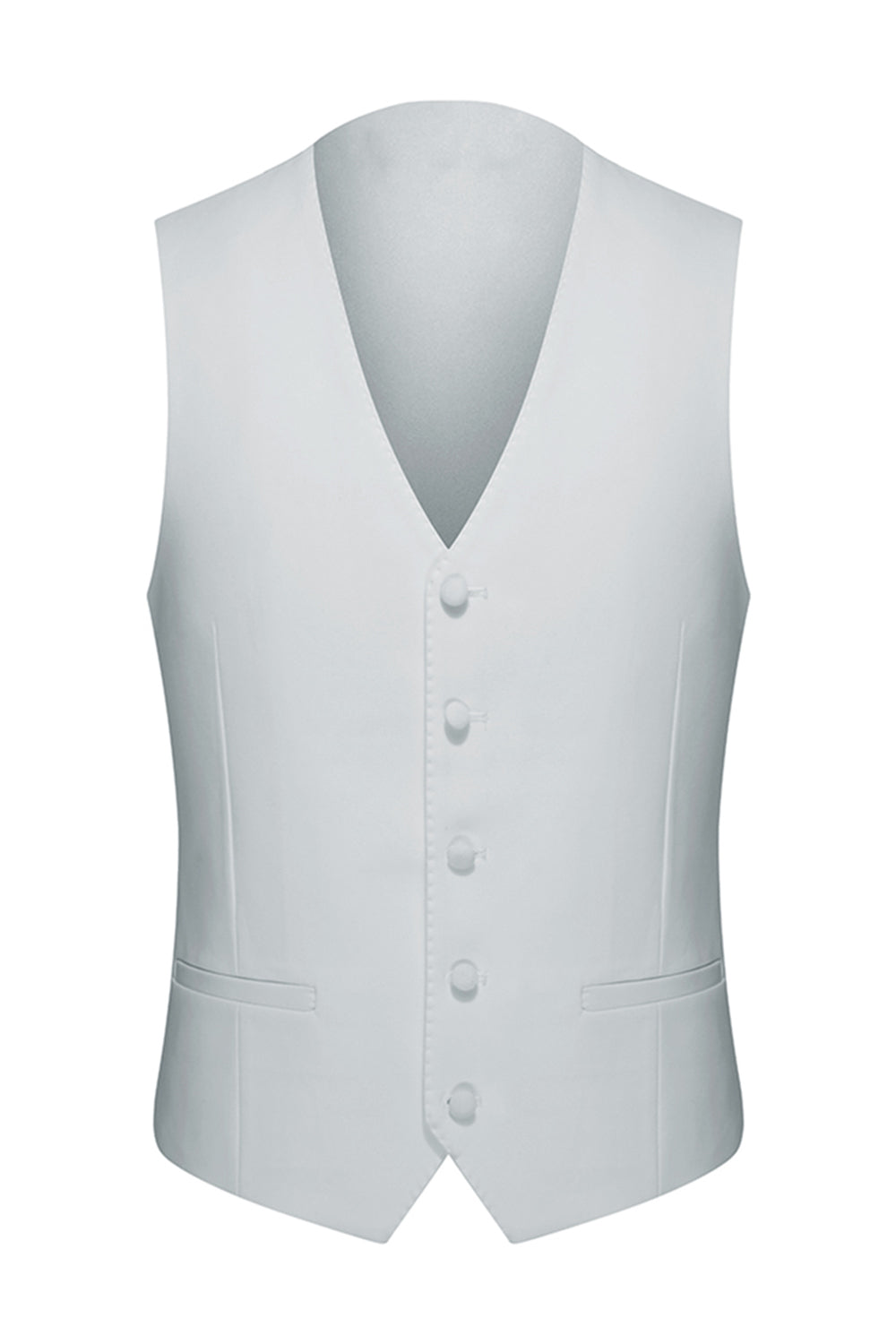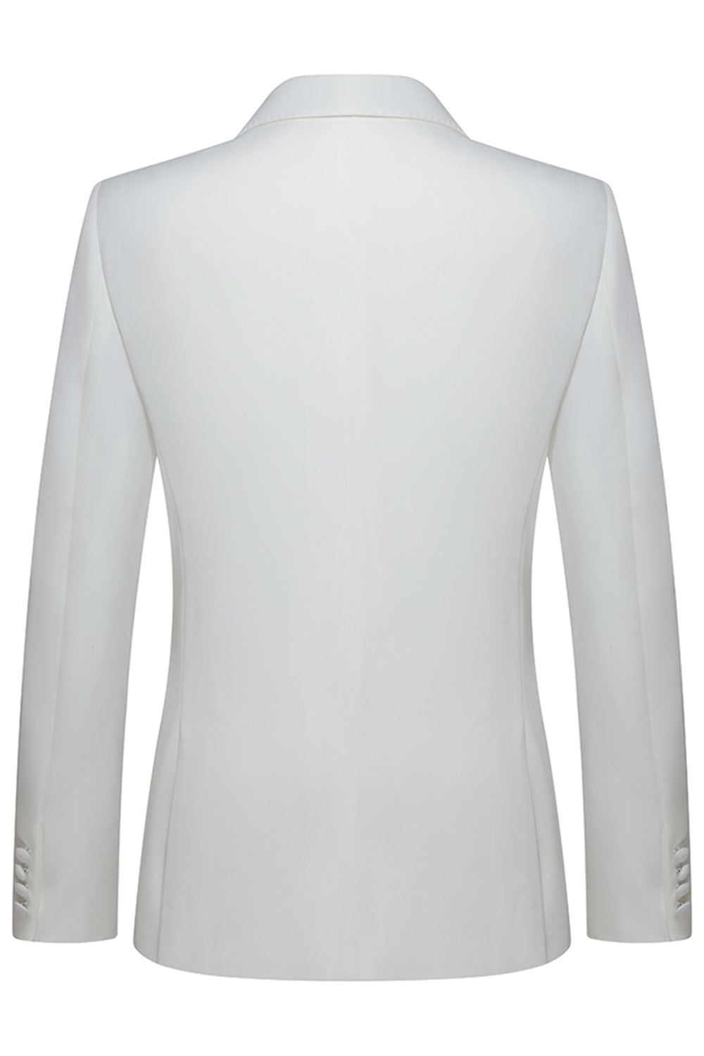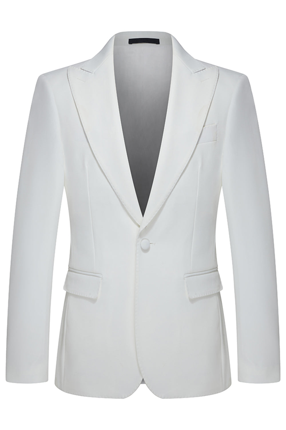 Costume de mariage blanc 3 pièces à un bouton pour hommes à revers de pointe