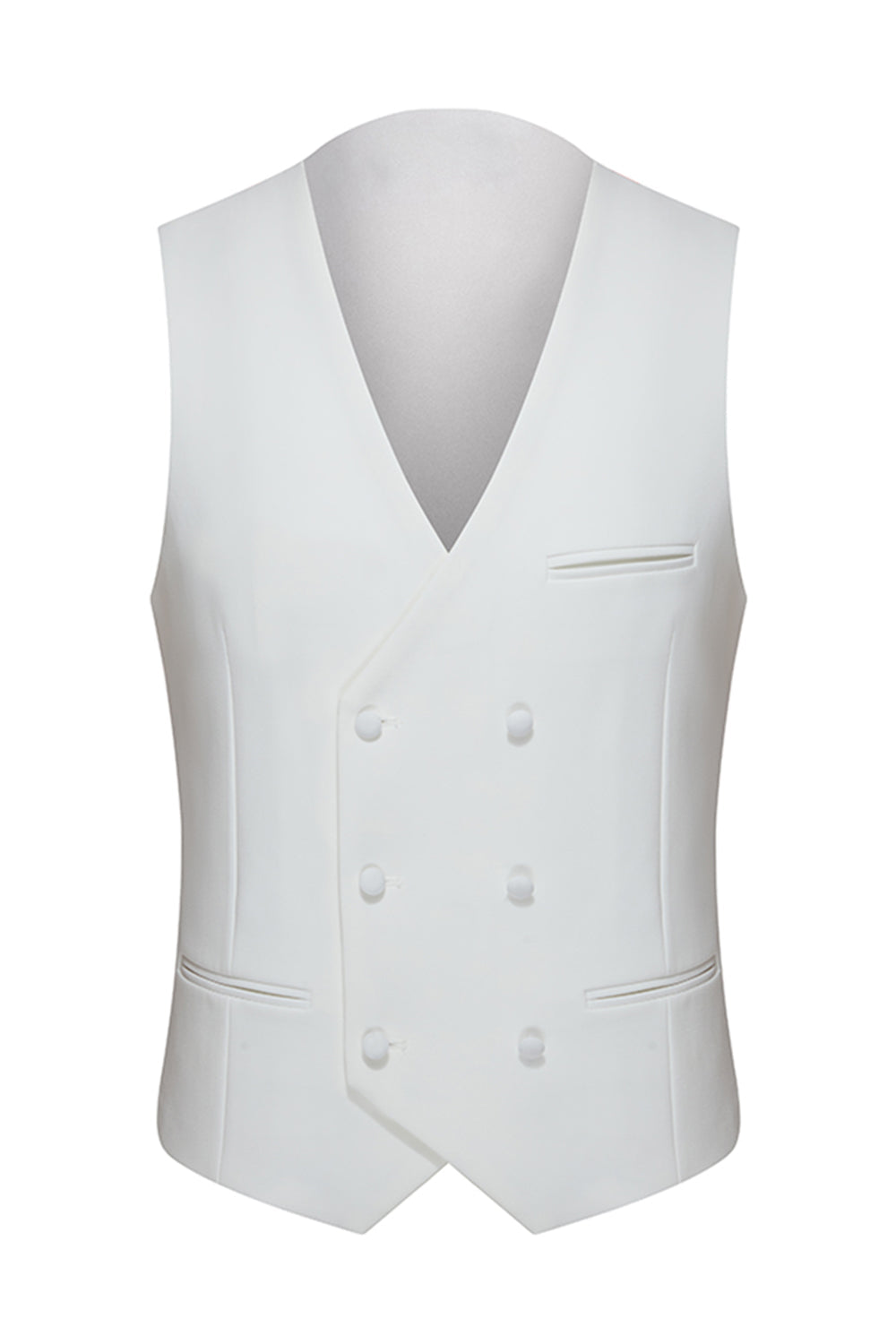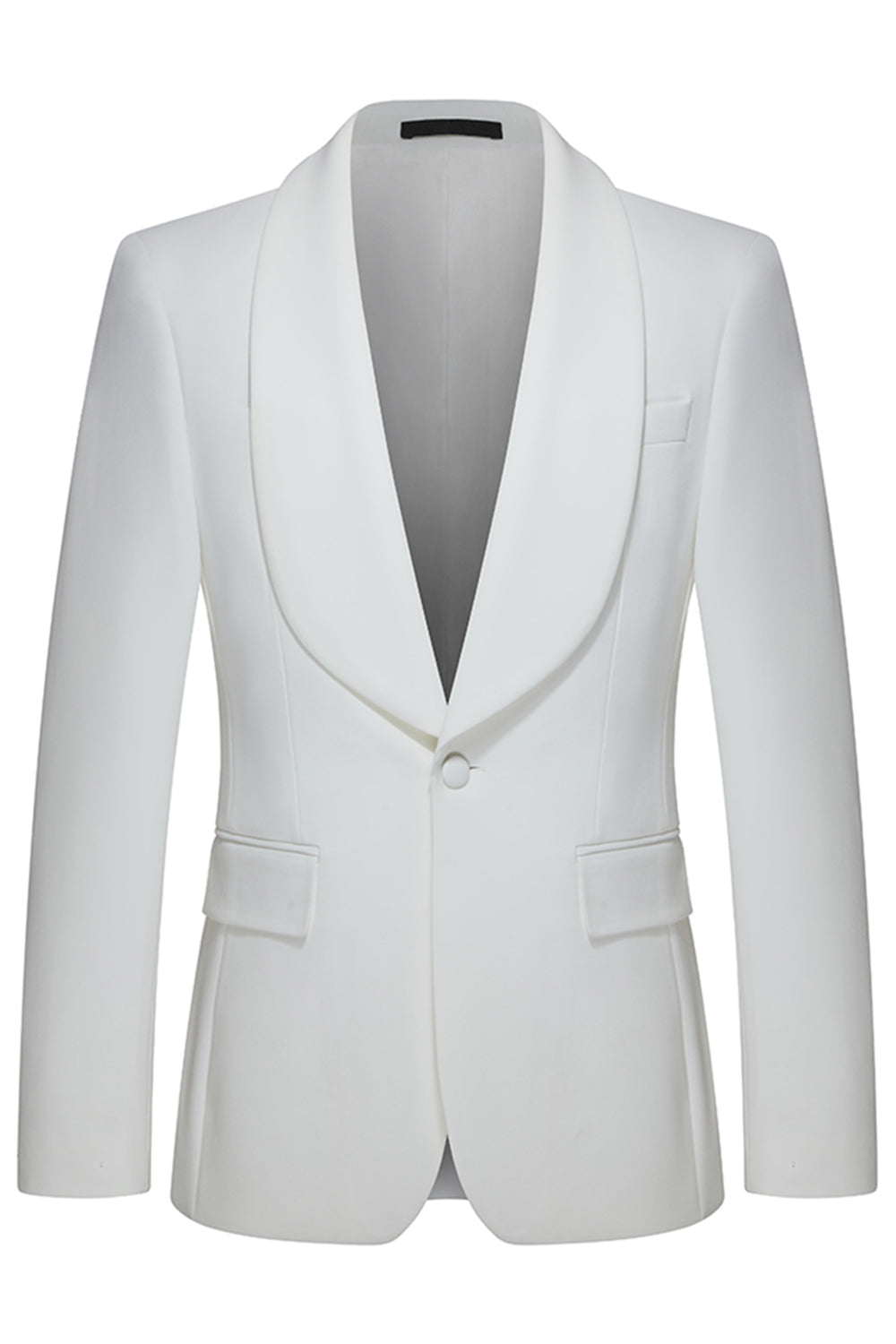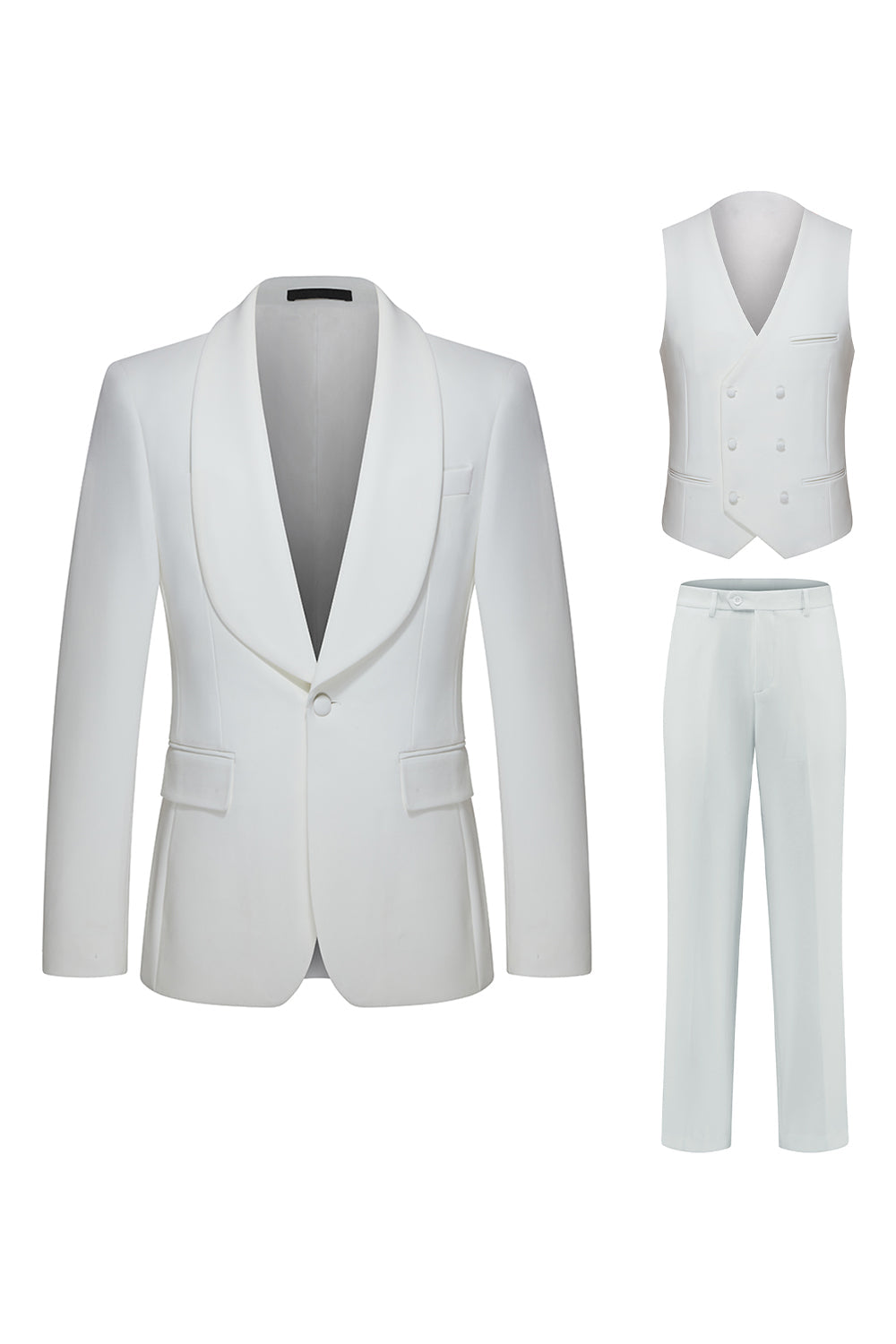 Costumes de mariage blancs 3 pièces à revers en châle et un bouton, combinaisons de mariage