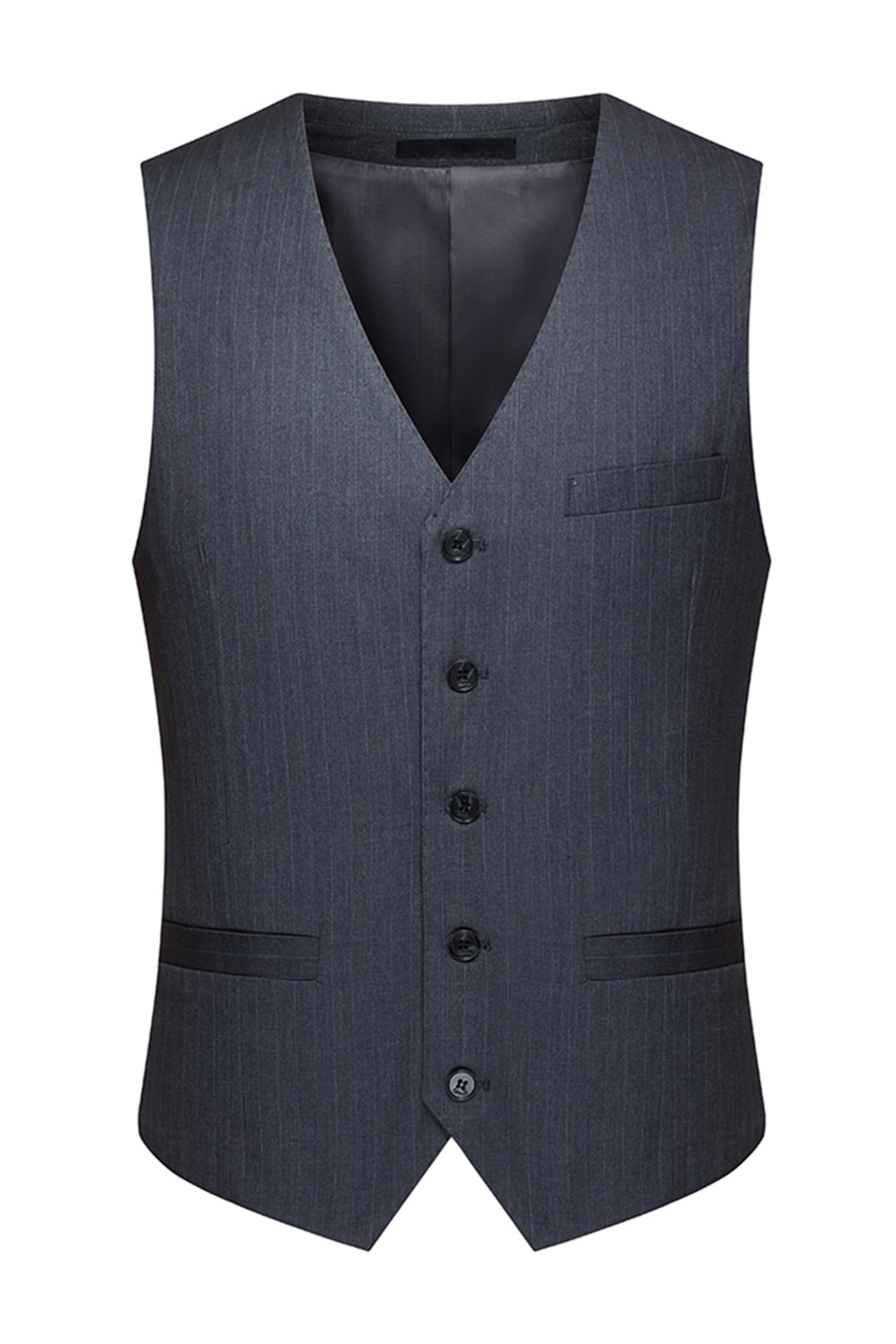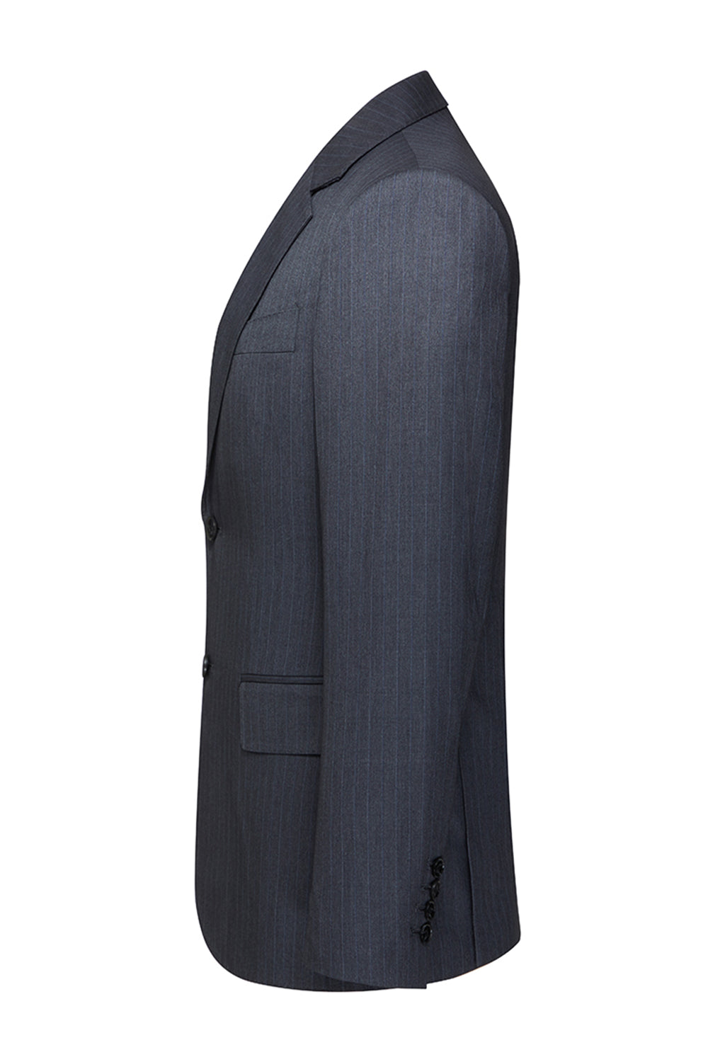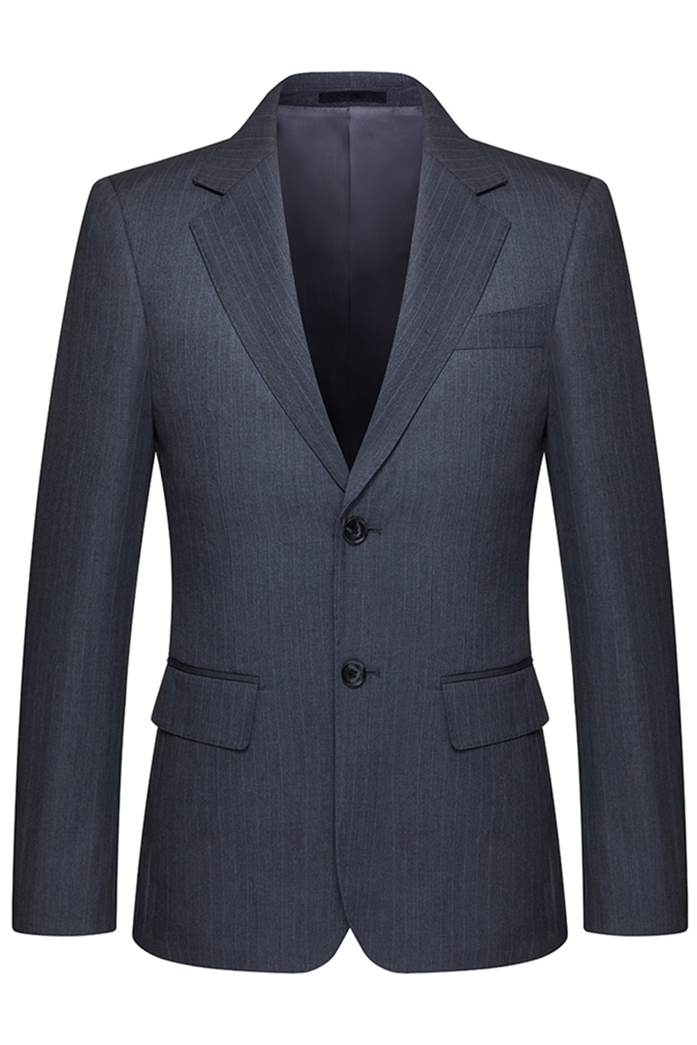 Costumes trois pièces pour hommes à revers rayés gris et encochés
