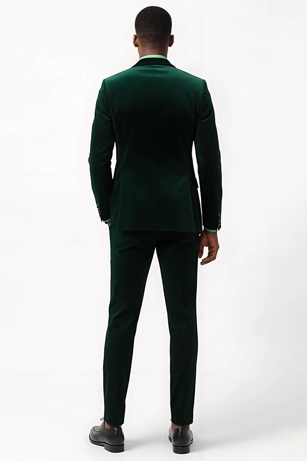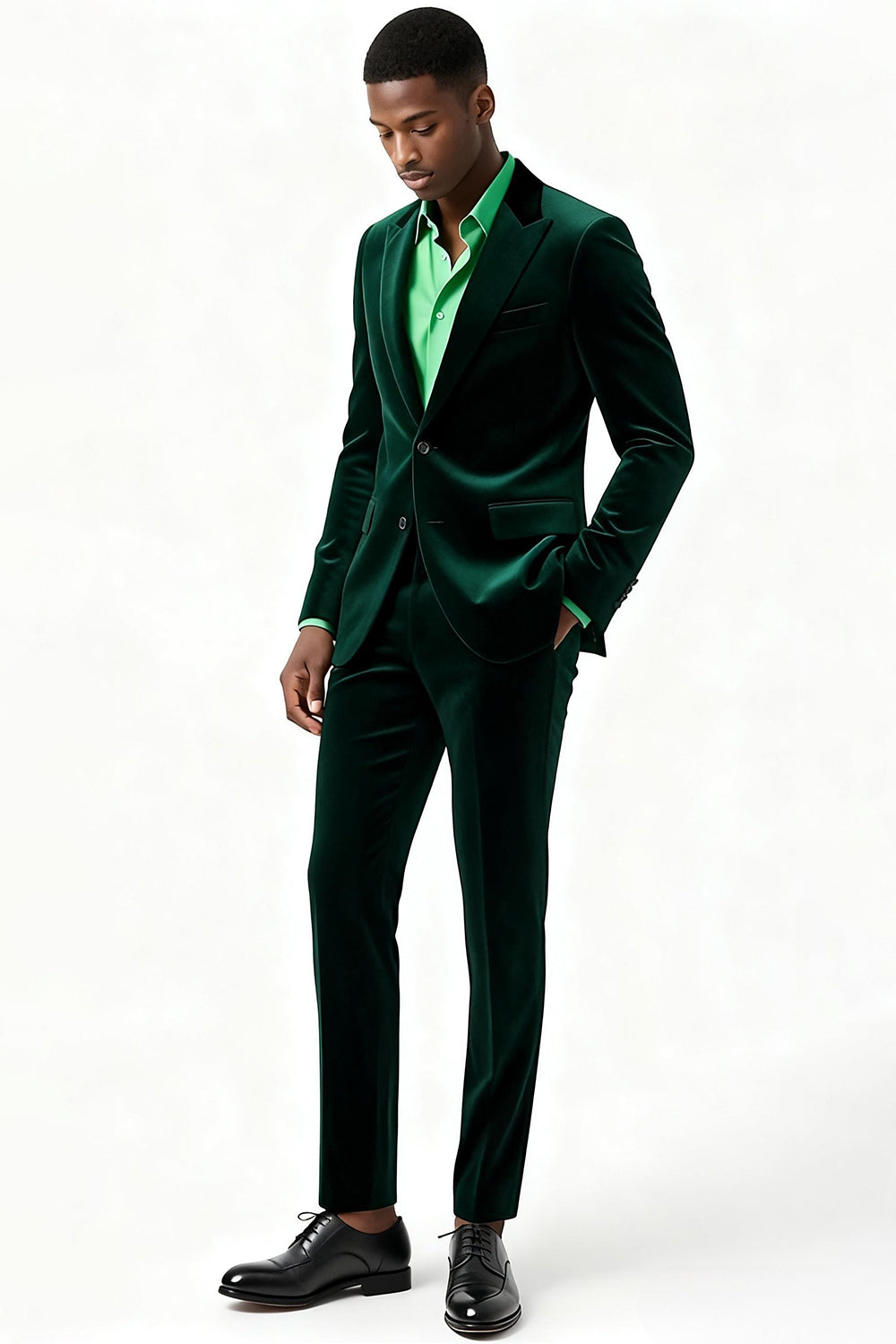 Vert foncé Peak Lapel 2 pièces à simple boutonnage Costumes pour hommes