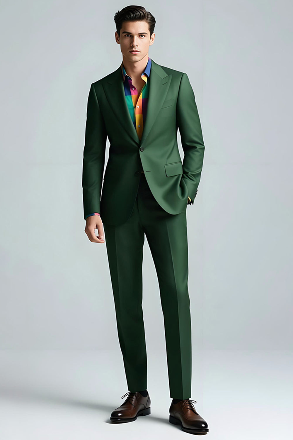 Vert foncé Peak Lapel 2 pièces Slim Fit Costumes de bal