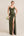 Olive spaghetti bretelles satin froncé gaine longue robe de demoiselle d’honneur