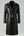 Trench Coat noir en cuir à revers à boutonnage double boutonnage pour hommes