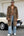 Manteau d’homme long ouvert devant fausse fourrure de léopard brun