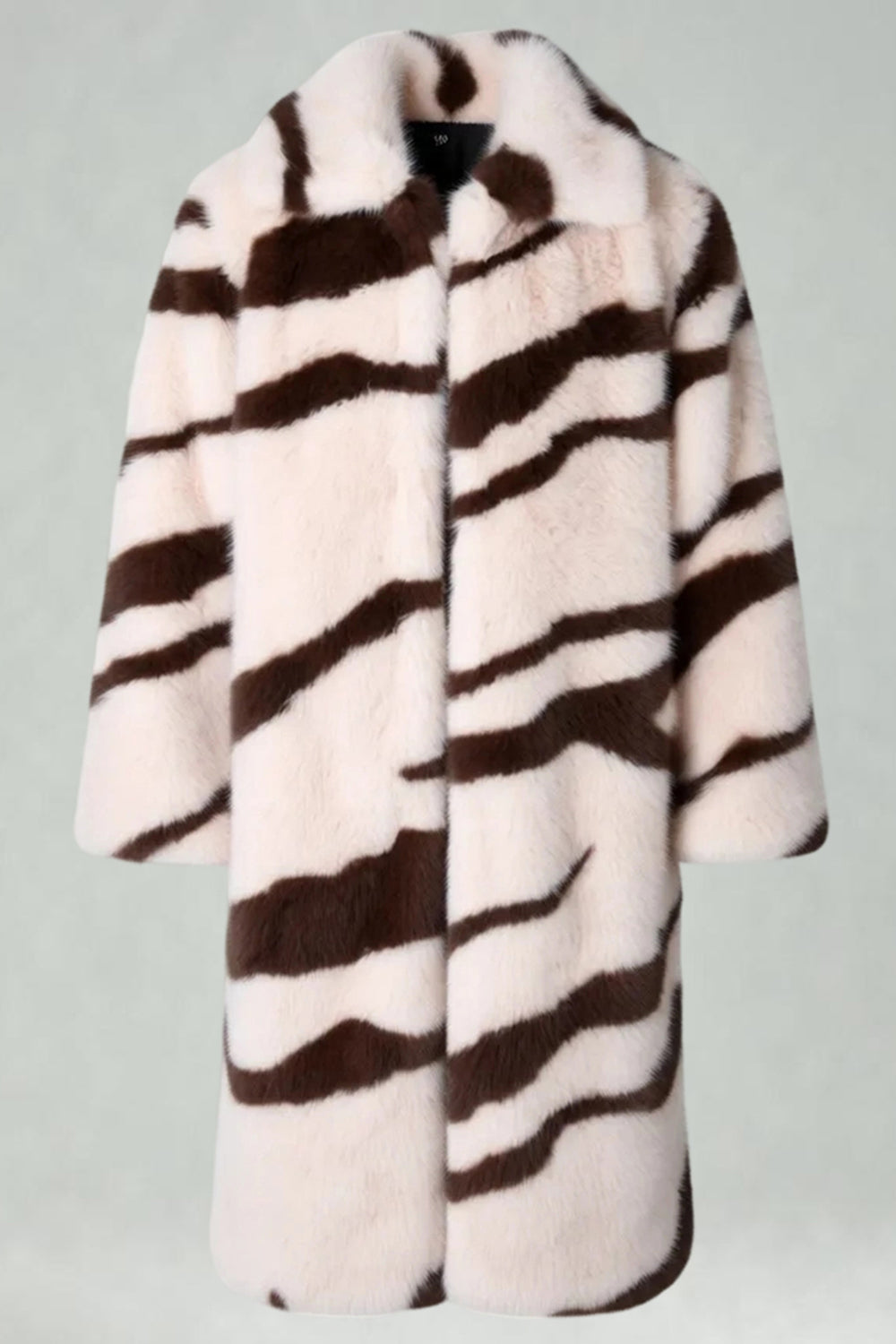 Zèbres abricot fausse fourrure ouverte devant Long manteau pour hommes