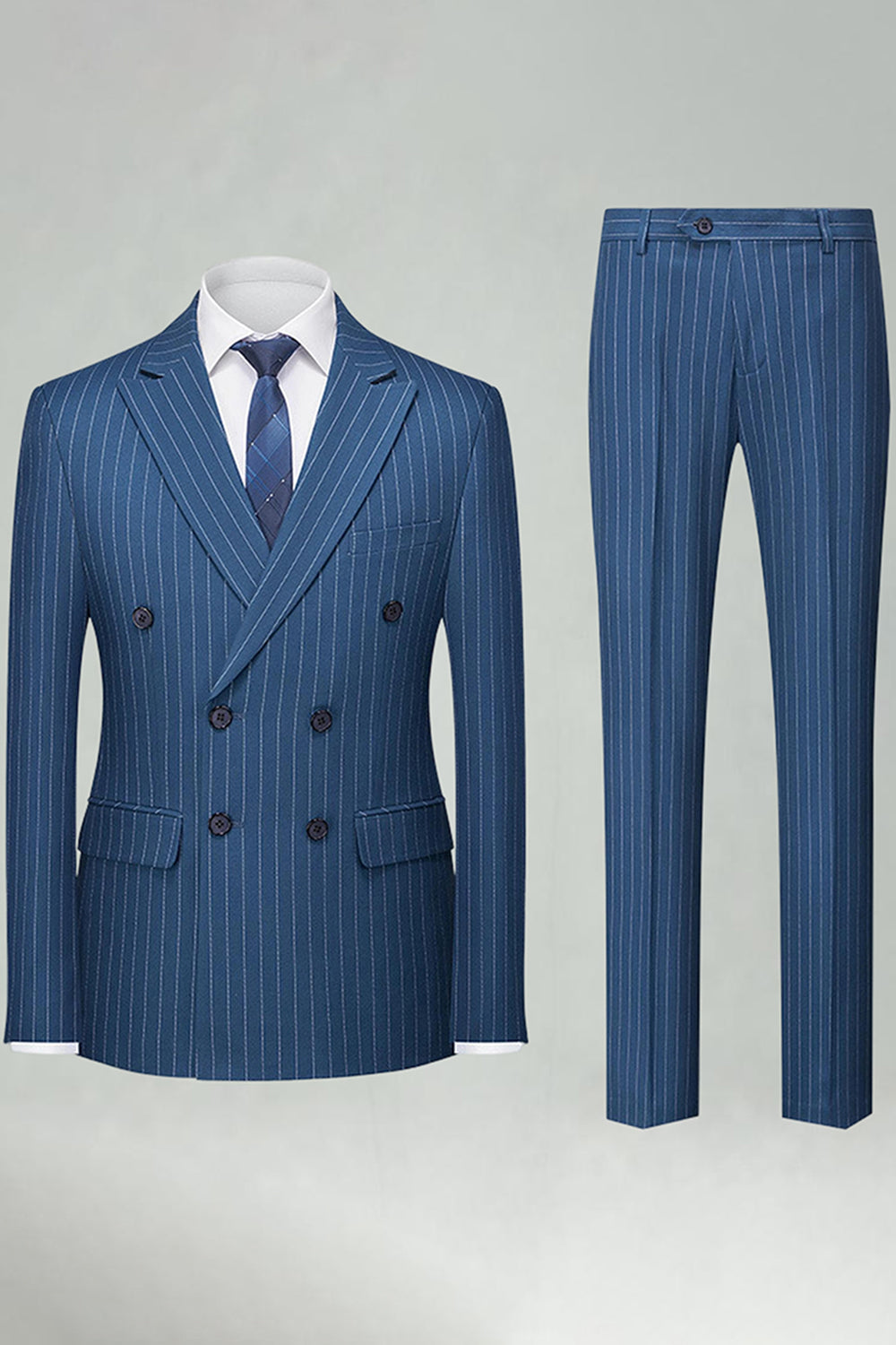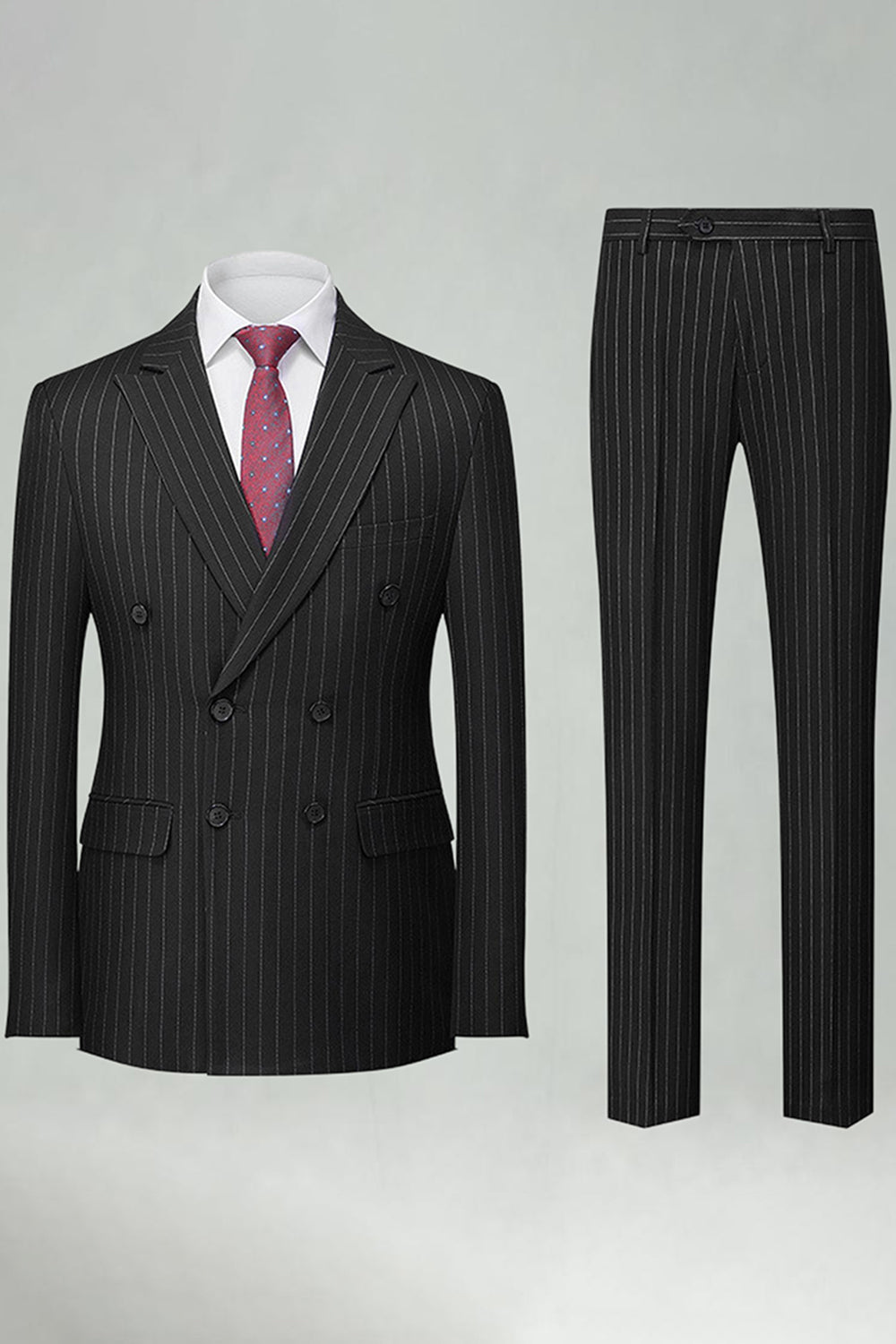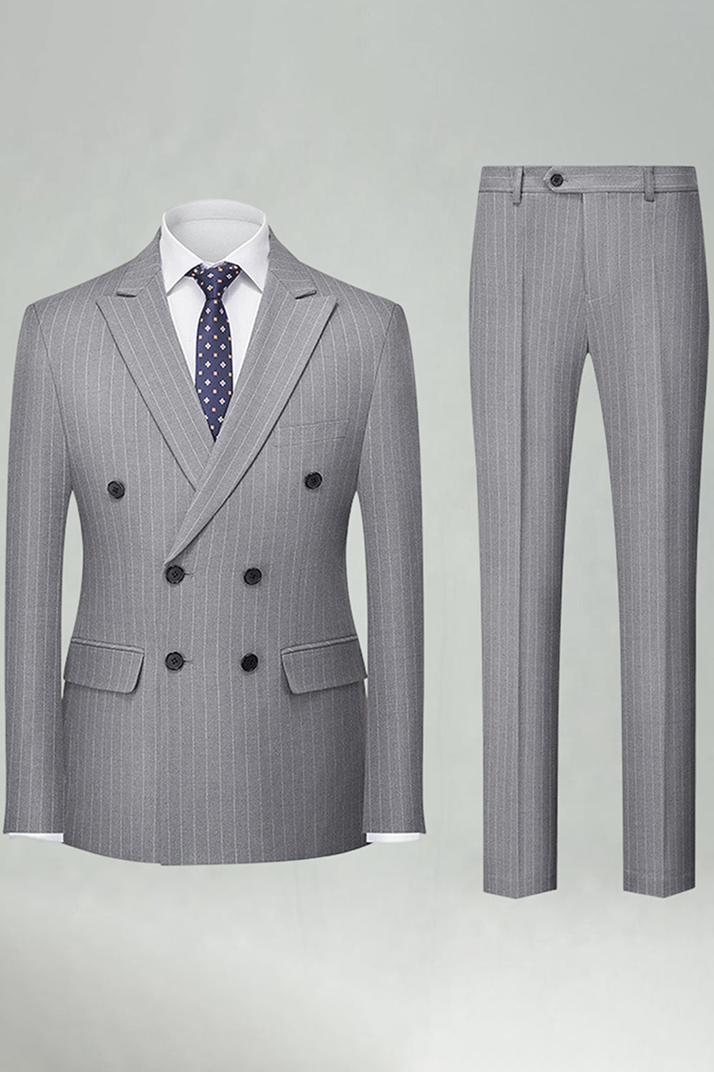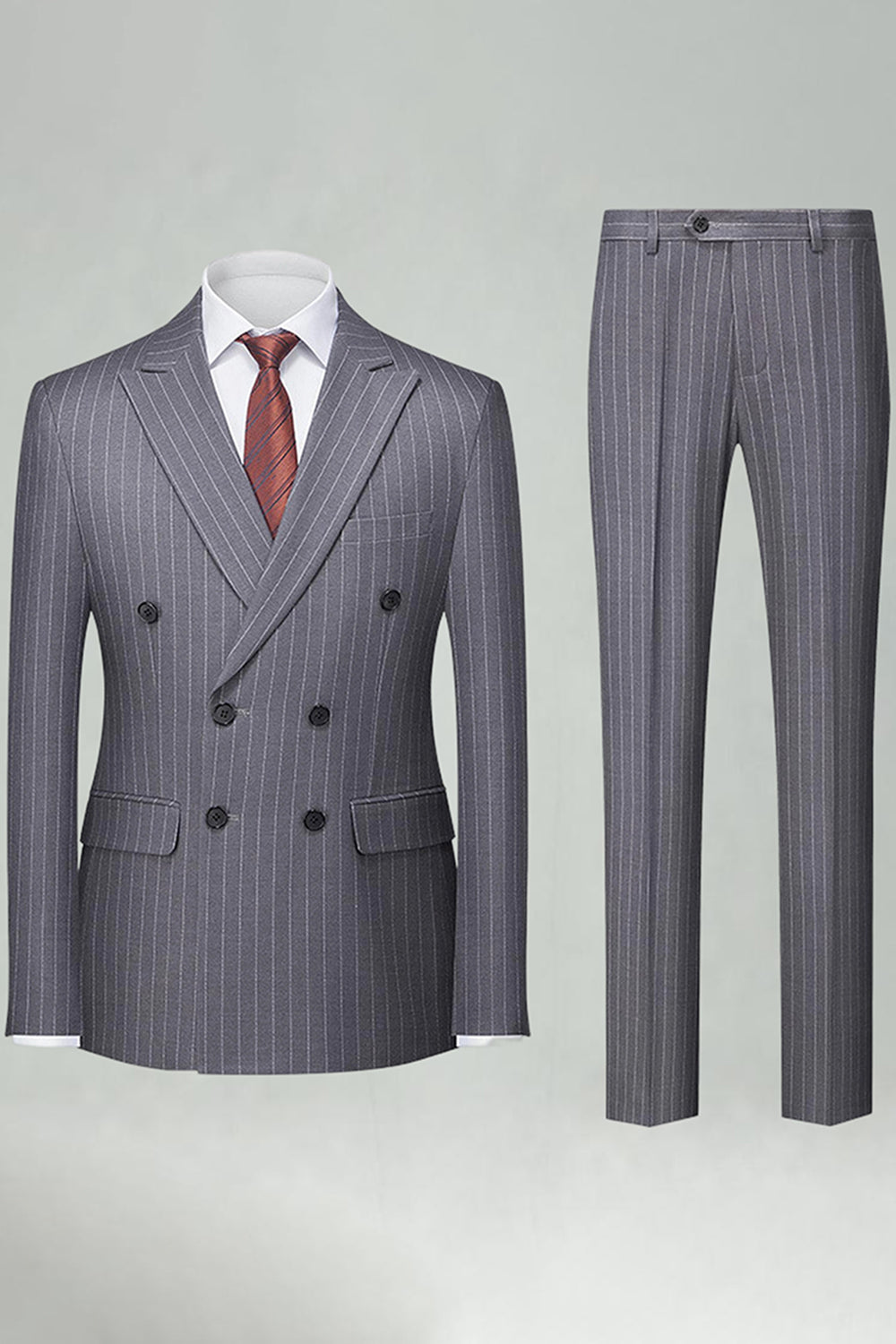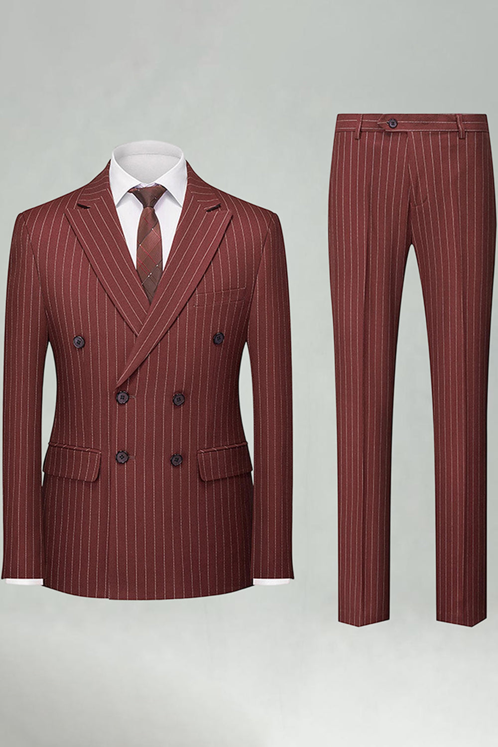 Costumes pour hommes kaki à rayures double boutonnage 2 pièces