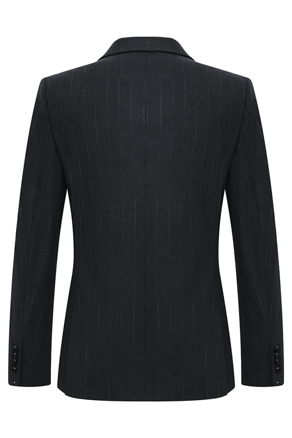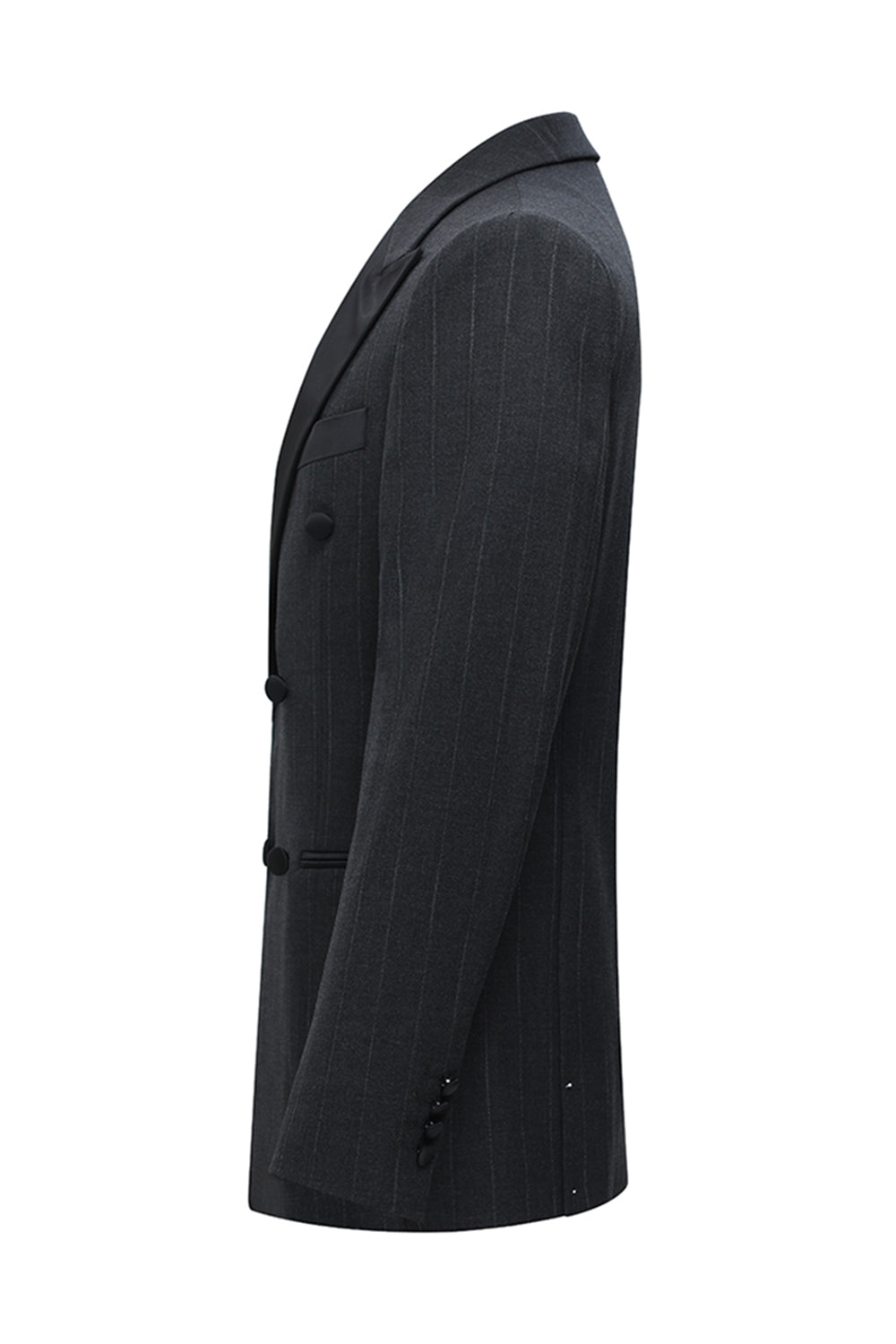 Gris foncé 2 pièces à revers en pointe à double boutonnage rayé pour hommes