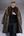 Manteau long à capuche en fausse fourrure noire pour homme