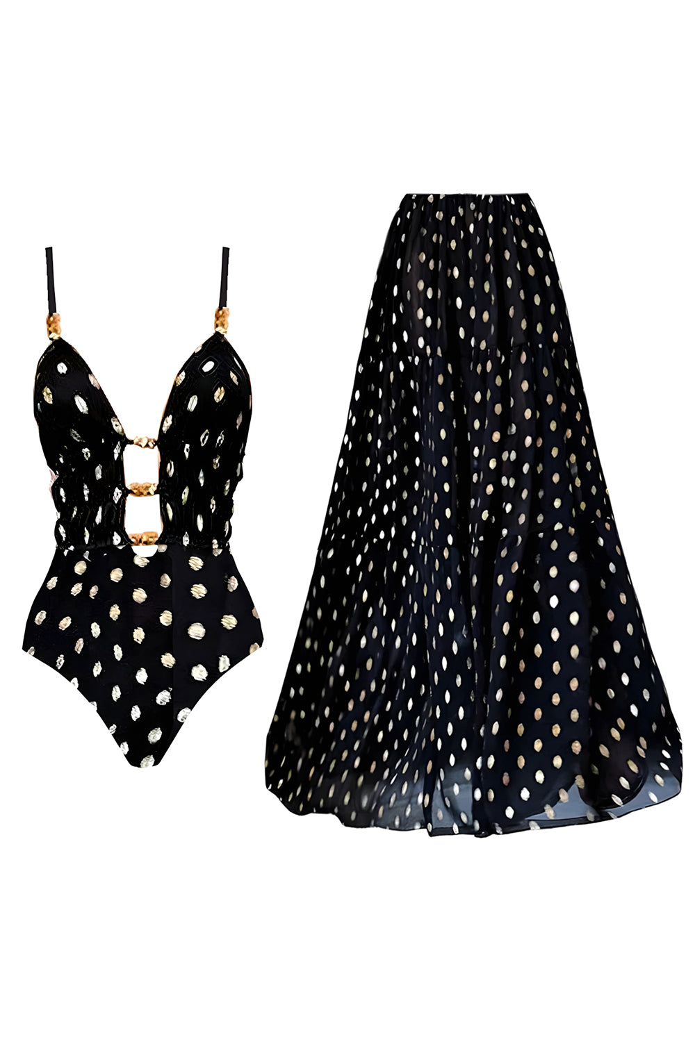 Maillot de bain à poches blanches noires à bretelles fines en deux pièces découpées avec couverture
