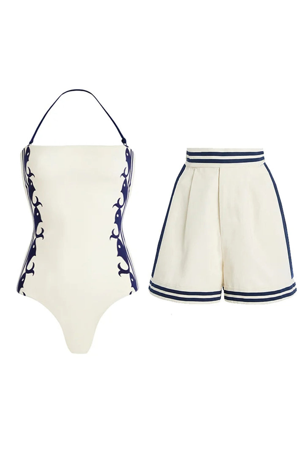 Maillot de bain blanc 2 pièces avec ensemble court