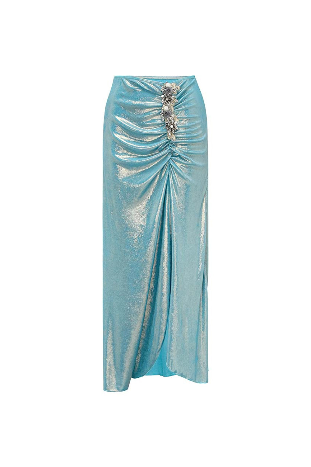 Maillot de bain bleu métallique à col en V 2 pièces perlés avec robe de plage