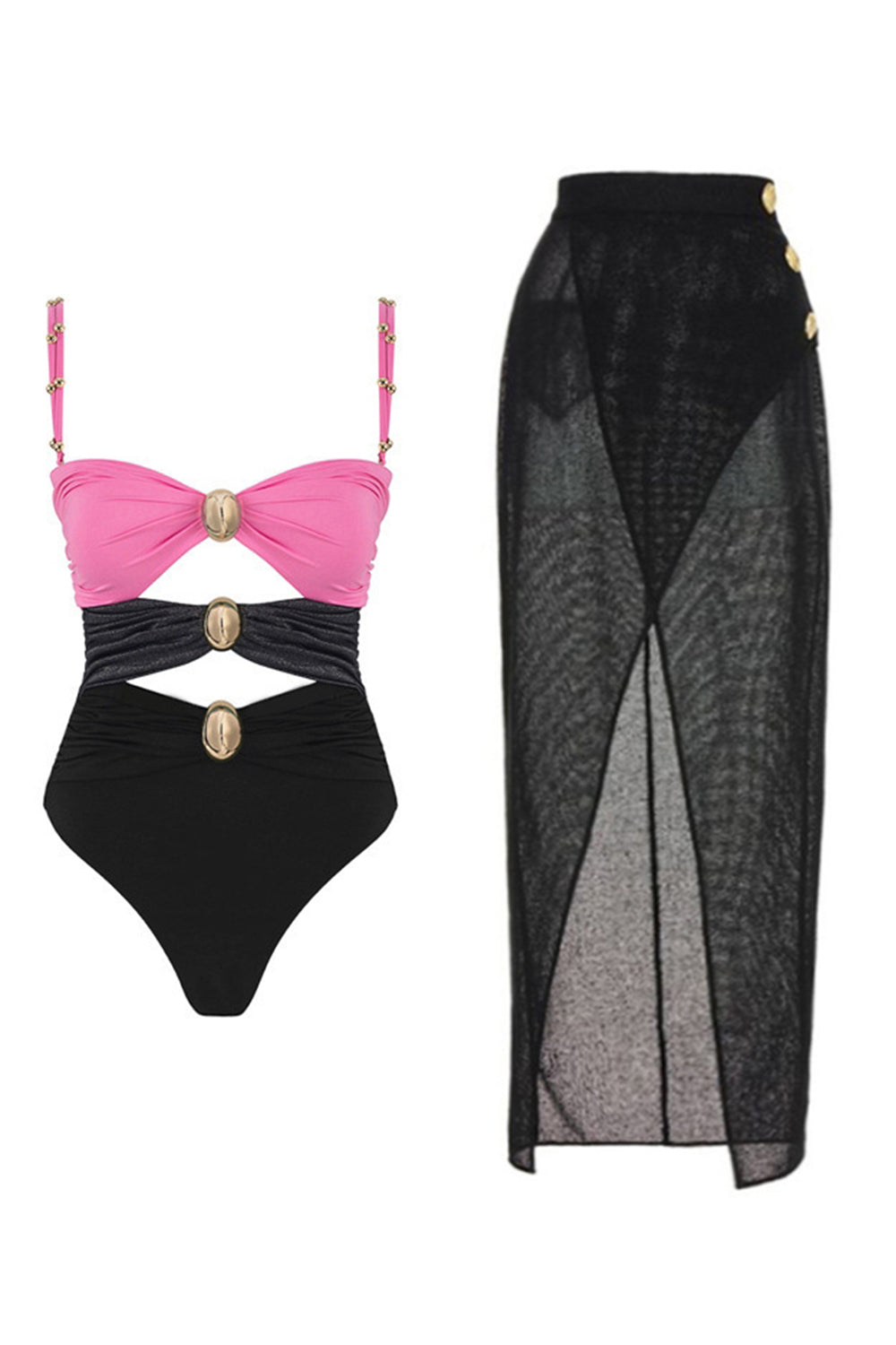 Maillot de bain noir à bretelles fines en 2 pièces avec robe de plage
