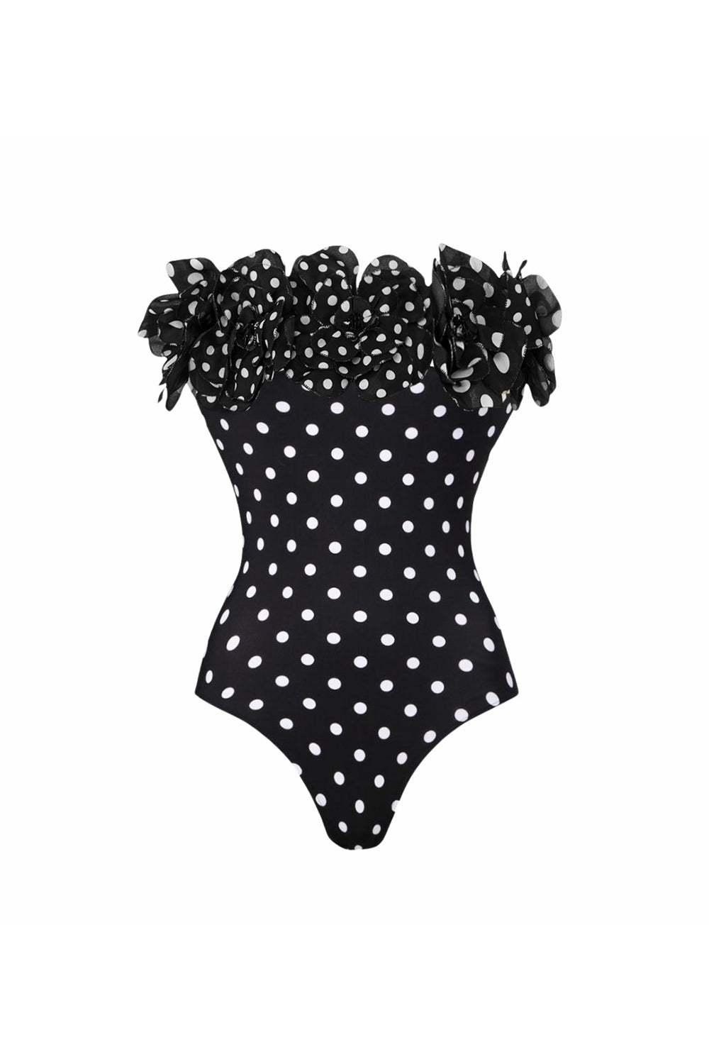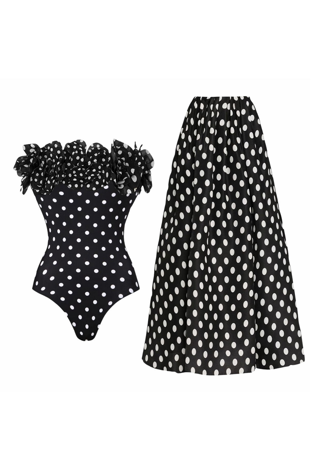 Maillot de bain noir White Dots 2 pièces bretelles sans bretelles à volants avec jupe de couverture