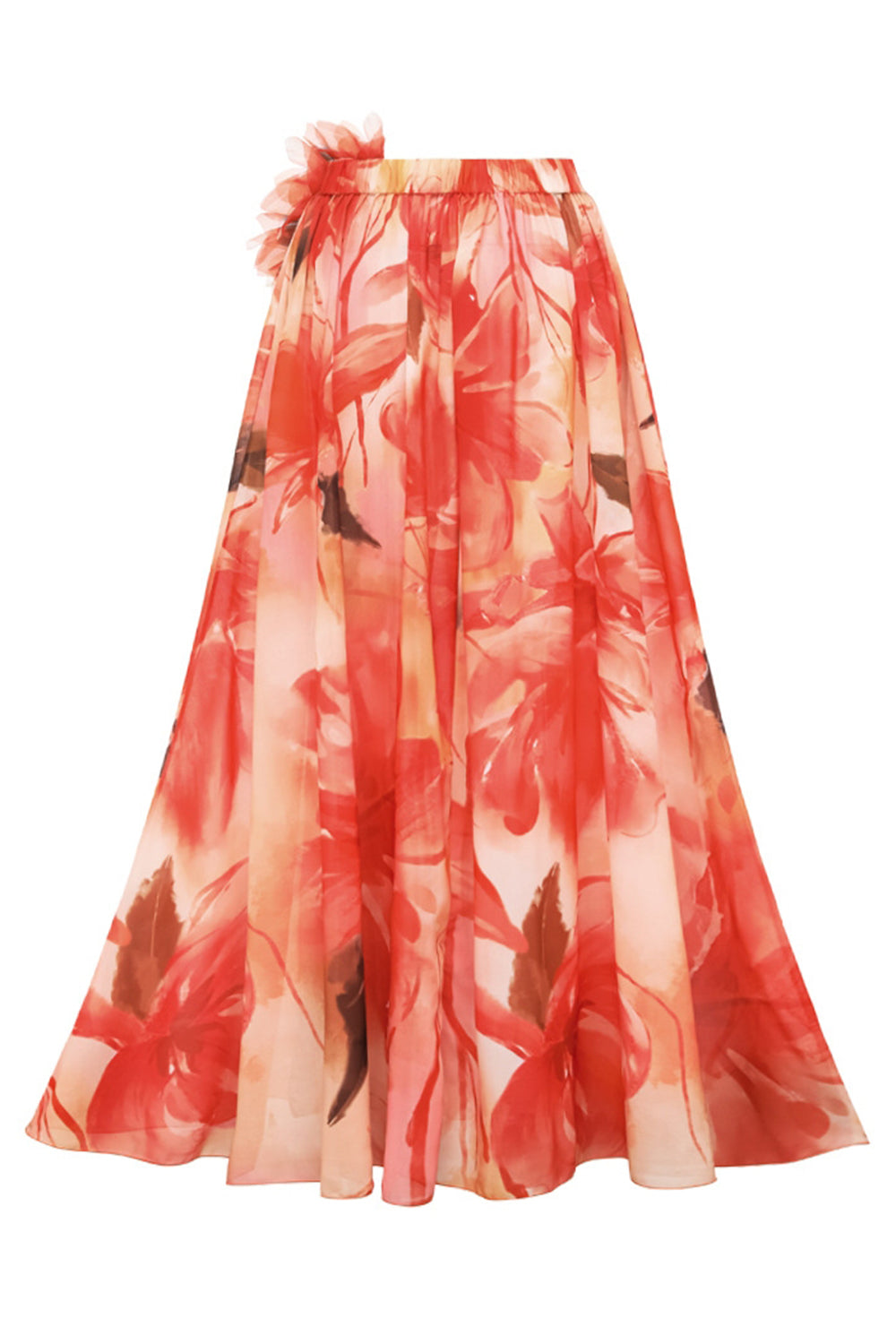 Maillot de bain orange à volants 2 pièces à col en V avec robe de plage