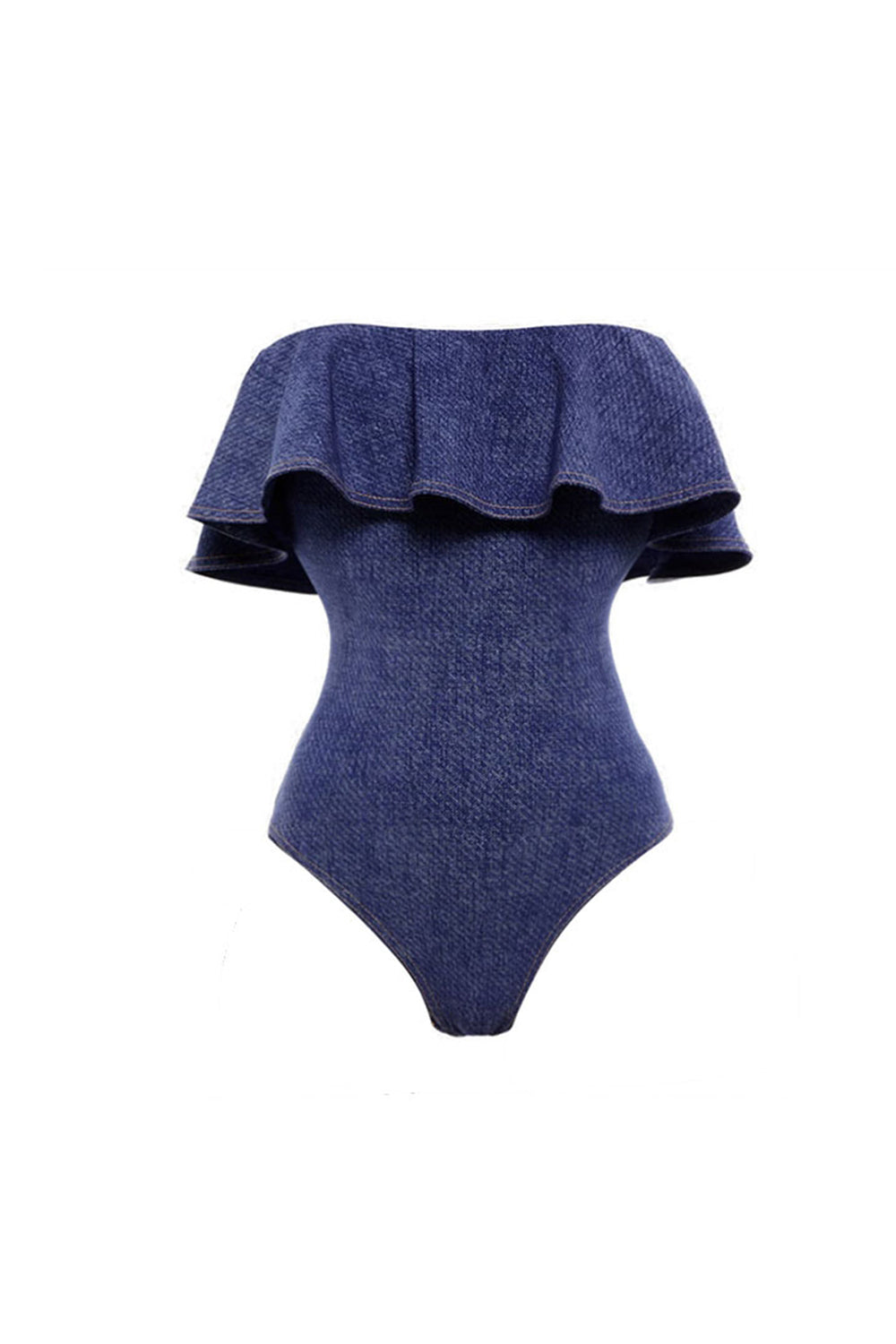 Maillot de bain rayé bleu marine découvert à épaules 2 pièces avec couverture