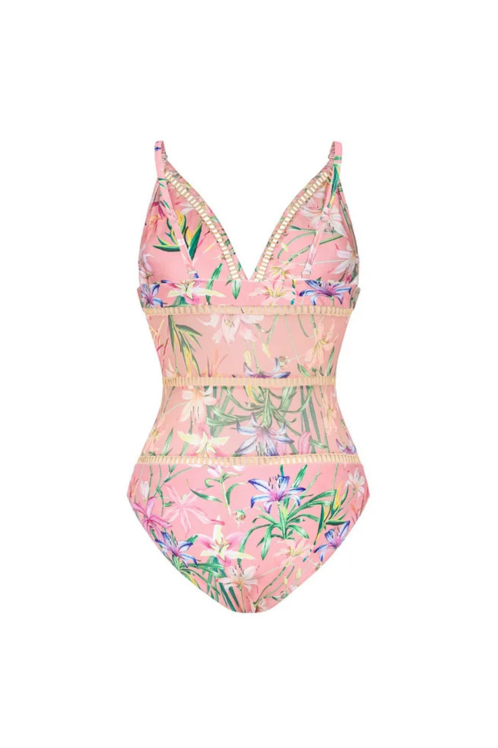Maillot de bain rose à volants à volants en 2 pièces avec robe de plage