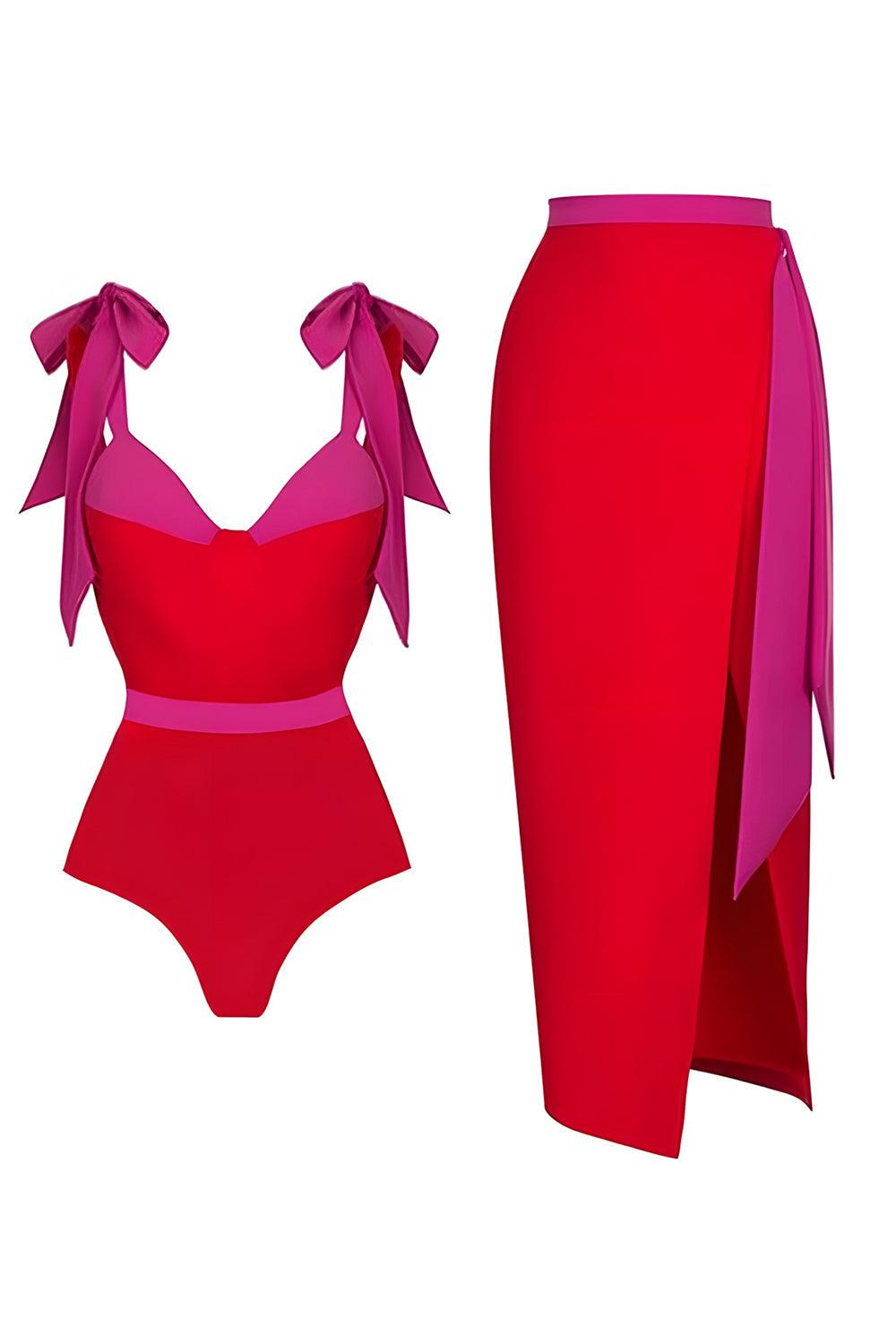 Maillot de bain rouge 2 pièces à bretelles fines avec robe de plage