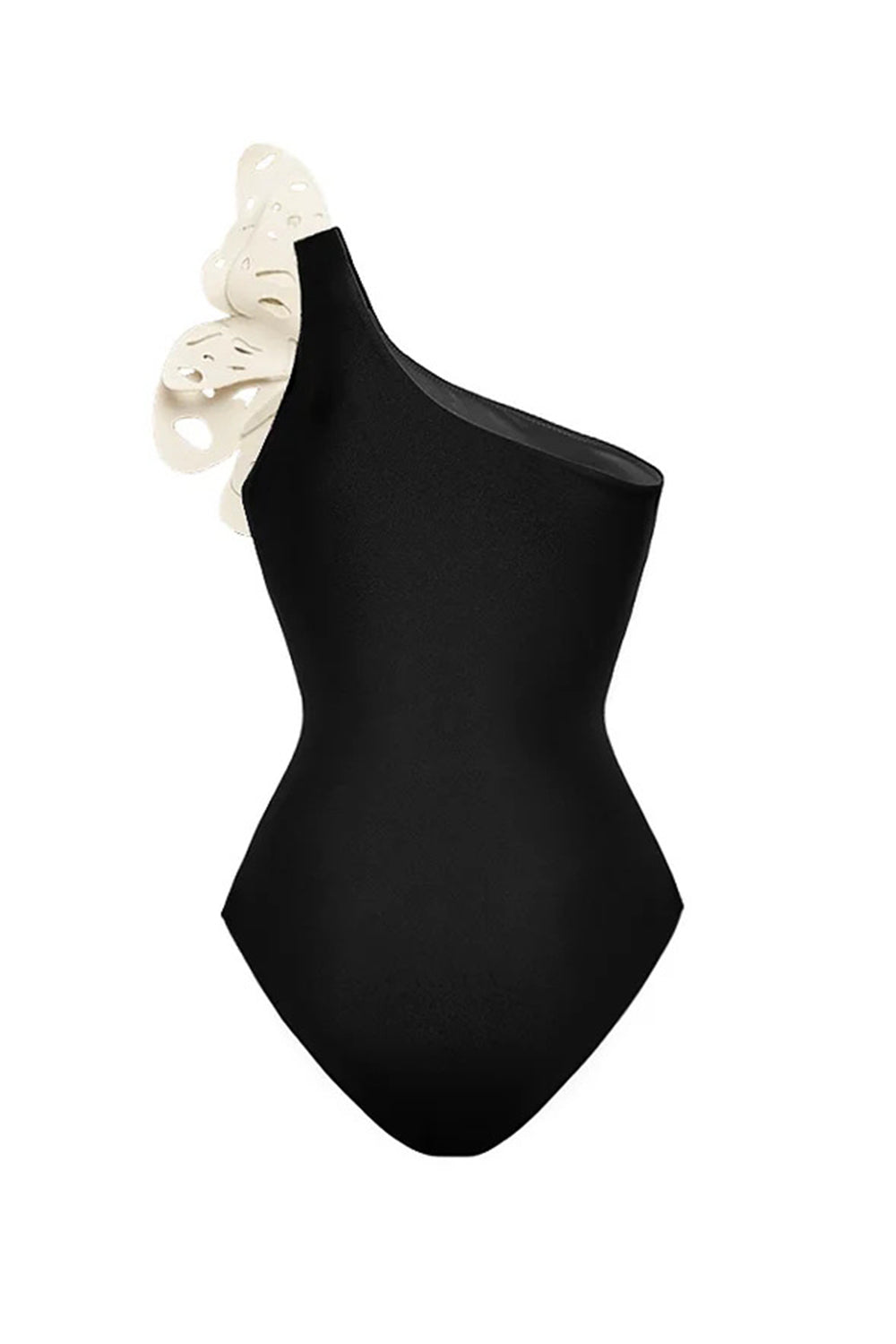 Maillot papillon noir 2 pièces à une épaule appliquée avec robe de plage